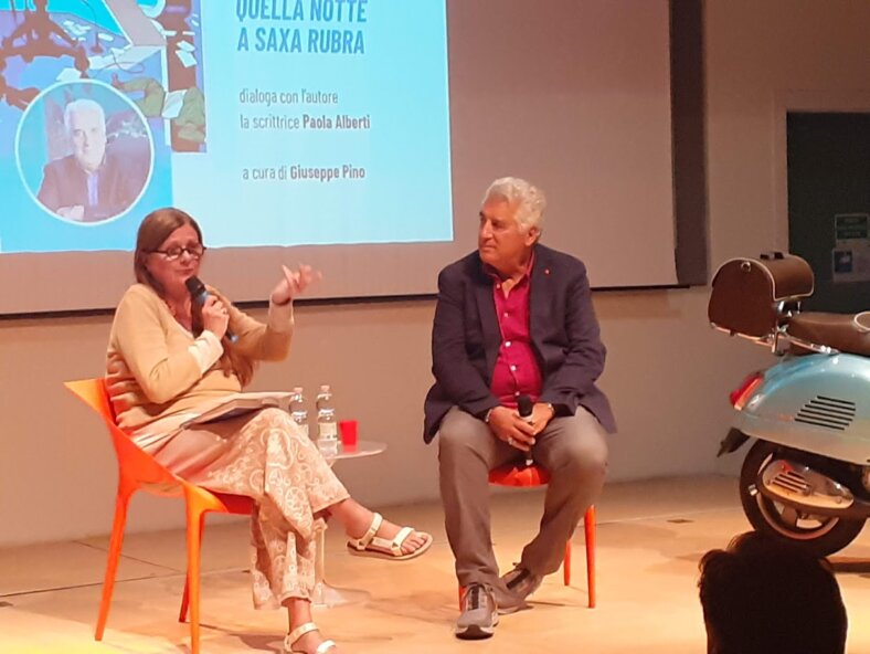 Aulla (Massa), agosto 2022, presentazione del saggio Uno studio in giallo (ETS) e colloquio sul genere poliziesco con la professoressa Rita Biancheri, docente di Sociologia nell'Università di Pisa.