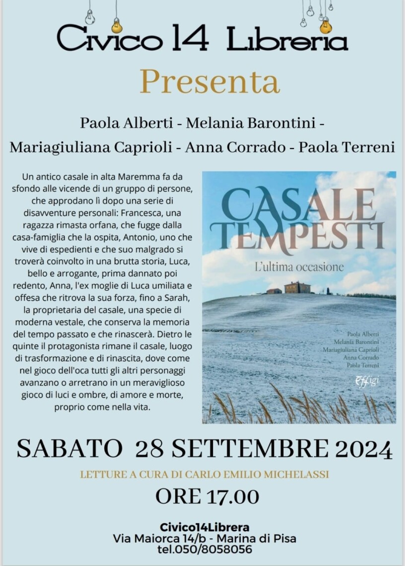 Sabato 14 giugno 2025, alle ore 17:30, a Roccatederighi, nell'antica casa (un ex frantoio dell'Ottocento) della scrittrice maremmana Paola Alberti, già allieva di Dacia Maraini, giornalista che ha lavorato per Panorama, per Il Tirreno e che è stata la conduttrice di una rubrica tv sui libri oltre ad aver insegnato quest'anno Italiano e Latino nel Liceo scientifico di Grosseto, verrà presentata l'antologia di racconti